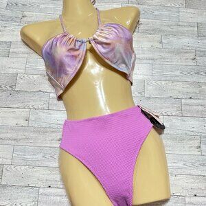 NWT VICTORIA’S SECRET MULTI WAY TIE DYE TOP & HIGH WAIST RIBBED BIKINI SET M