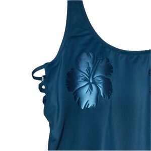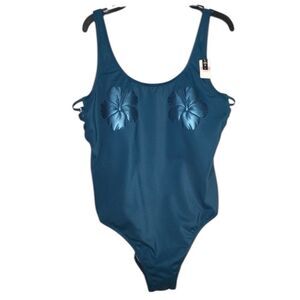 NWT VICTORIA’S SECRET PINK HIBISCUS FLOWER TEAL ONE PIECE SWIM SUIT LARGE