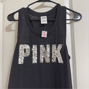NWT VICTORIA’S SECRET PINK LOGO SEQUIN RACERBACK TROPICAL PRINT TANK TOP SMALL