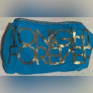 Color blue with gold “tonight forever “ print , gold thread shimmer trim