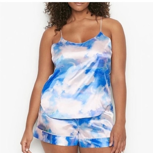 NWT VICTORIA’S SECRET Rainbow Sky Satin 2-pc Short Pajama Set top XL shorts L