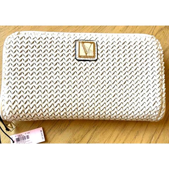 NWT VICTORIA'S SECRET The Victoria Wallet White Woven Coconut Texture Full Zip