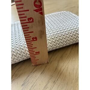 The NWT Victoria's Secret The Victoria Wallet in White Woven Coconut Texture is a stylish and practical accessory for women. Made from polyurethane, this wallet features a solid white color with a zipper accent and a zip-around style. It is designed with credit card slots and has a size of L, with dimensions of 8 inches in length and 4 inches in width. The wallet is adorned with the iconic Victoria's Secret branding and is a perfect addition to any fashion-forward woman's accessory collection.