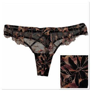 NWT VICTORIA'S SECRET Very Sexy Thong Sz LARGE Black Mesh Lace Metallic Floral