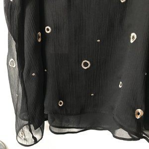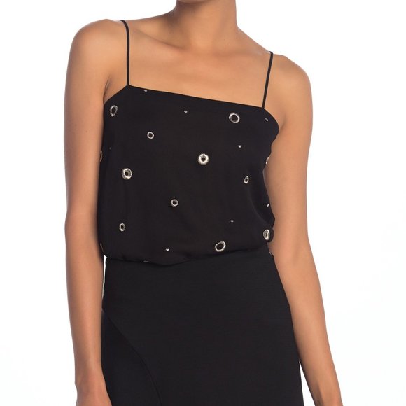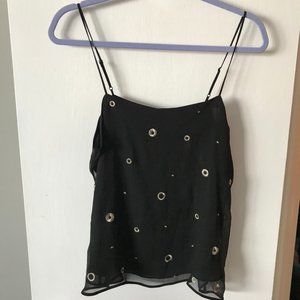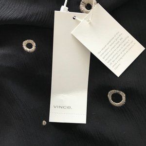 NWT VINCE Black Cami Sz L w Metallic Embroid