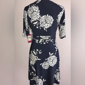 NWT VINCE CAMUTO Navy Floral Wrap Polyester Dress Size 8