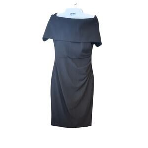 NWT VINCE CAMUTO Off-Shoulder Black Knee Length Cocktail Dress Ruched Waist Sz