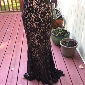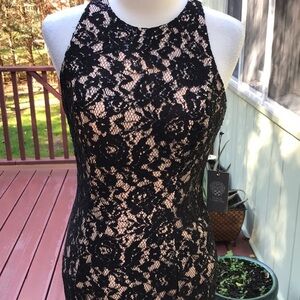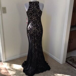 New! Vince Camuto Size 4 black lace long dress with sequins and nude lining. Back zipper. Gorgeous for any occasion.