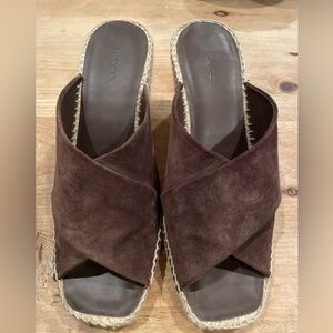 NWT VINCE Gaelan Brown Suede Wedge Espadrille Sandals 9M