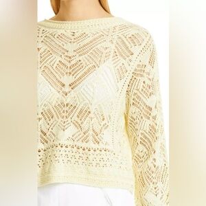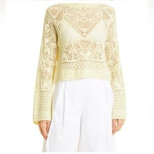 VINCE Lace Patchwork Pullover Organic CottonSweater in Pale Lemon Yellow NWT Size L.
