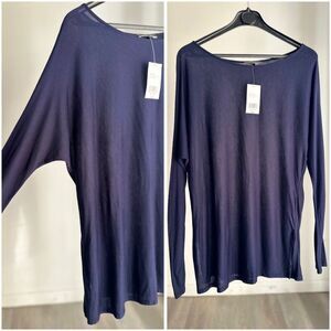 NWT VINCE Womens Shirt Size XS Navy Blue Long Sleeve Tunic Length Viscose Top