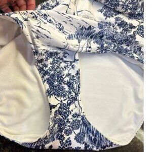 NWT VINEYARD VINES Square Neck One-Piece Swimsuit in Toile/Navy – Women’s Size Medium (M). This chic one-piece features a flattering square neckline, classic navy-and-white toile print, and sleek silhouette designed for both comfort and style. Perfect for beach days, poolside lounging, or resort getaways, this swimsuit embodies timeless preppy elegance with a modern twist.