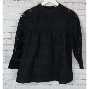 NWT VINEYARD VINES Womens' Mock Neck Eyelet Top Blouse Black Size 6 $128.00