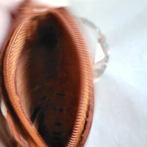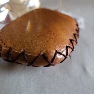 NWT VINTAGE 1970 HANDMADE LEATHER CAT KEYCHAIN COINPURSE