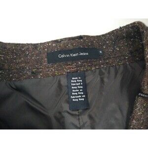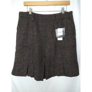 NWT VINTAGE Calvin Klein Wool Blend Pocket Brown Pleat A-Line Mini Skirt Size 12