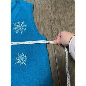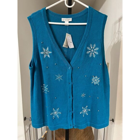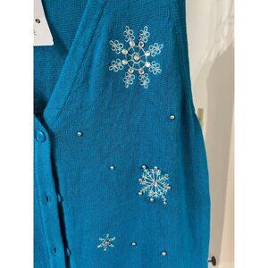NWT VINTAGE Christopher & Banks Womens XL Snowflake Embroidered Teal Vest 55% Ra