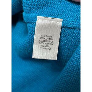 This charming Christopher & Banks vest evokes a wintry nostalgia with its delicate snowflake embroidery. Crafted from a cozy blend of ramie and cotton, it whispers of gentle winters of yore. The inviting teal hue and intricate detailing make it a timeless piece for any vintage-inspired wardrobe.