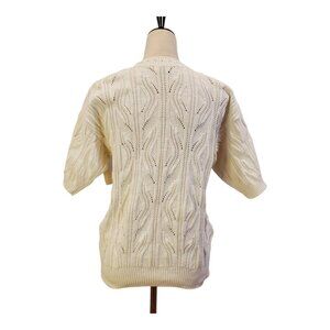 VINTAGE 1990s Distinction SZ S/M 100% Cotton Short Sleeve Cable Knit Crew Neck Sweater - Made in USA