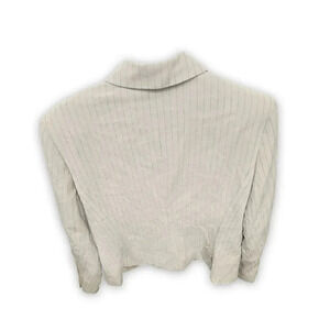 This women's vintage chic blazer features a timeless cream and beige striped pattern that exudes understated elegance. Its classic silhouette, complete with a notched lapel and button-front closure, offers versatility for both professional and casual occasions.