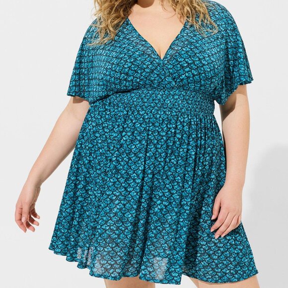 TORRID SWIM COVER - MERMAID SCALE PRINT BEACH MINI DRESS COVERUP PLUS SIZE