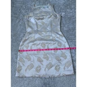 NWT VIntage S Cream Jay Jacobs Satin Jacquard Floral Tulip Mini Dress Sleeveless