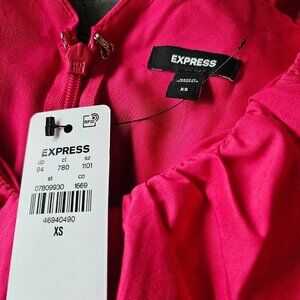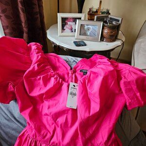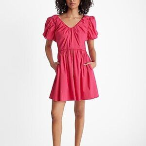 NWT V-NECK PUFF SLEEVE POPLIN MINI DRESS