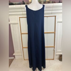 Beautiful flowing rayon navy blue maxi dress with a flattering V-neckline. Has shoulder straps that are covered stretchy elastic. High side slits make this everything from sexy evening to casual vacay. Elegant airy and comfy. No flaws. Pit to pit 22” shoulder to hem 56”. Side slits are approx. 18” from hem. Beautiful fabric. Bought at fine boutique. Inside top has double material! Well made! Not see through. Boho beachy vibes.