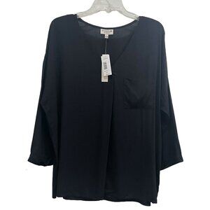 NWT V-Neck Pleated Front Top | 3/4 Sleeves | Woven | Black | Studio B by Bobeau