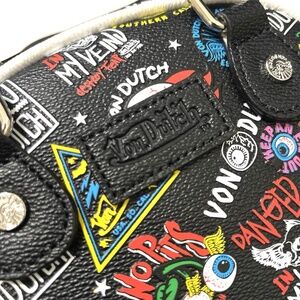 NWT VON DUTCH Mini Bowling Bag Black Jax Pattern Vegan Leather Crossbody Purse