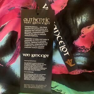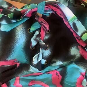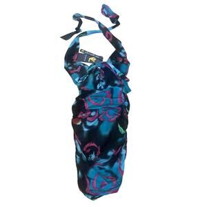 NWT VON LANCELOT BLACK/PINK/BLUE LACE UP BACK RUCHED HALTER DRESS SIZE 9