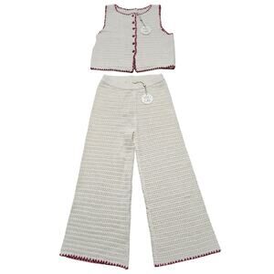 NWT VRG GRL Stella Knit Vest and Pants Set Size M/L Cream Red