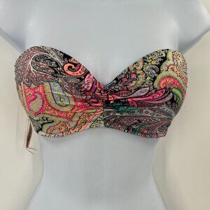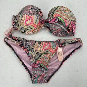 NWT VS 32D/S Paisley Bikini Set Bandeau Strappy Cheeky Swimsuit Multi-Color