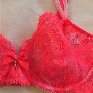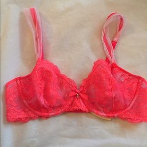 •Sparkly stones on Sheer floral Lace detailed cups, •Ruffled adjustable straps!
