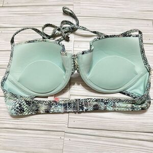 NWT VS BOOSTER HALTER SWIMSUIT BIKINI TOP MINT SNAKESKIN MERMAID 36C