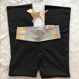 ✅NWT VS PINK black & gray bling boot cut yoga pants.