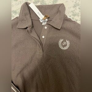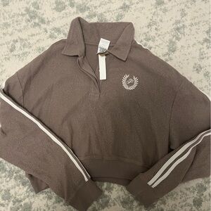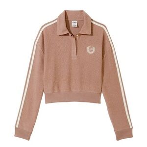 NWT VS Pink Reverse Fleece Cropped Polo Sweatshirt