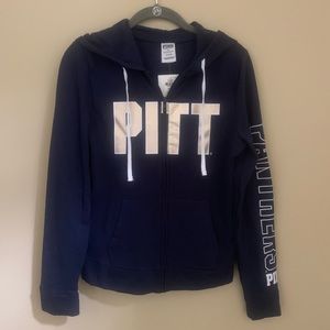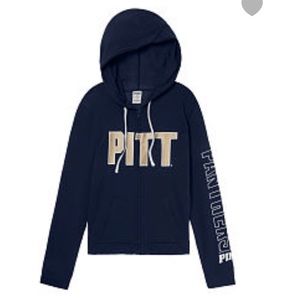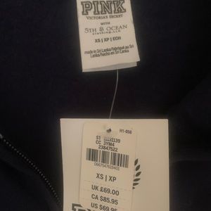 -Brand new VS Pink jacket made with 5th & Ocean Clothing Company -Lightweight 60% cotton, 40% poly; Machine wash -“Pitt”Screen Print across front of jacket, “Panthers” and “Pink” on left sleeve -Approx 23” long, approx 18 1/2” pit to pit -Stock image from VS
