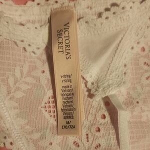 NWT VS White Laced Thong With Pink Heart. Size: M
