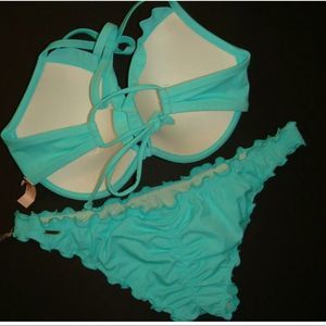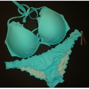 NWT Victoria's Secret the fabulous bikini in seafoam glow:32c top+XS ruffle itsy bottom
