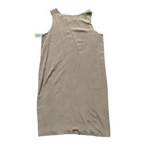 Features: A gorgeous sleeveless column dress with an optional tie. The dress is reversible from a camel tan to a cream color. Great for at the office, a night out, or as a wedding guest.