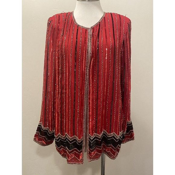 New with tags Vintage 80's Jean for Joseph Le Bon Red Silk Sequin Beaded Colorful Holiday Jacket M