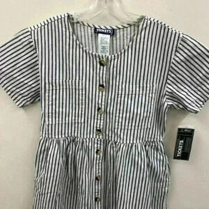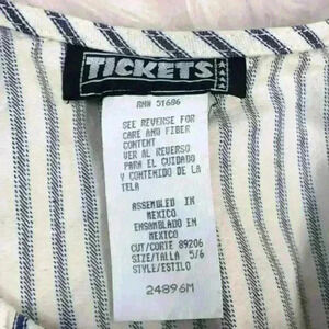 NWT VTG 90s Tickets Vertical Lines Summer Casual Beach Date Vintage Rounded Neck Buttons Pockets Short Sleeve Cotton Dress
