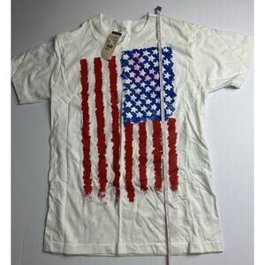 NWT VTG American Flag Shirt Childs Large 14-16 White Single Stitch 90s Patriotic
