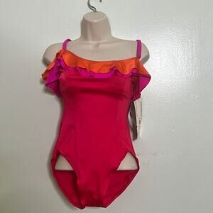 NWT VTG BILL BLASS SWIMSUIT RUFFLE COLORFUL SIZE 12