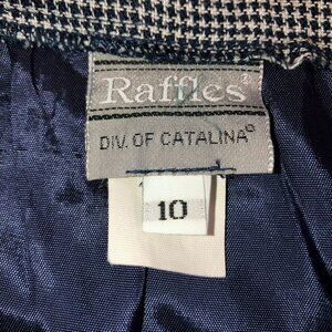 NWT VTG BLUE HOUNDSTOOTH A LINE SKIRT 26" RAFFLES LINEN BLEND FULLY LINE WOMENS