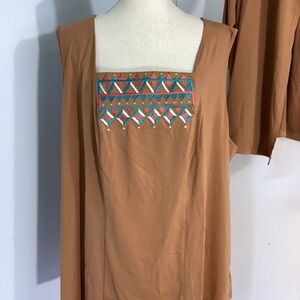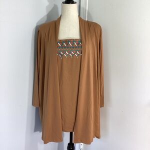 NWT VTG BOB MACKIE WEARABLE ART SOUTHWESTERN CARAMEL EMBROIDERY CARDIGAN & TANK