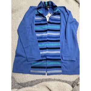 NWT VTG Bob Mackie Wearable Art Cardigan Sweater Women's Size Medium Open Front Striped Blue
