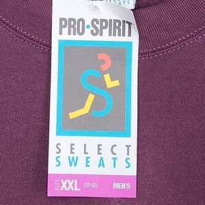 Men's NWT new with tags Pro-Spirit Select Sweats maroon burgandy red crewneck sweatshirt, size XXL extra extra large. Measurements are approximately 31" in length and 26.5" across the chest. Material content is 50% cotton/50% polyester.