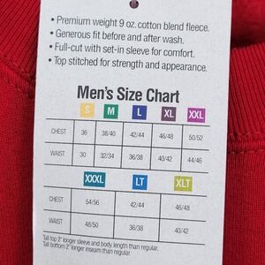 Men's NWT new with tags Pro-Spirit Select Sweats red crewneck sweatshirt, size XXL extra extra large. Measurements are approximately 30.5" in length and 27" across the chest. Material content is 50% cotton/50% polyester.