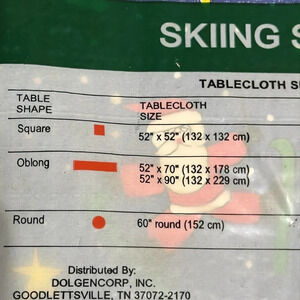 NWT VTG Holiday Style Flannel Back Vinyl Tablecloth 52x70 Rectangle Skiing Santa